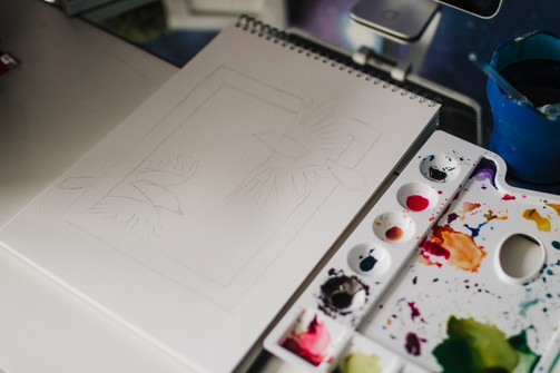 When I first started getting more serious about my art I started to paint things like birds and bugs and posted more to instagram. I had put up a question box about what to paint and got some suggestions including some magpies. Later that day my friend Leah then sent me a message which both excited and terrified me - would I do a commission for her?! It took me a few minutes to pluck up the courage to say yes but of course I wanted to do it! It was such an exciting opportunity to create something from someone else's vision. We got to work discussing what Leah was looking for and decided on 2 magpies (for joy of course!) and a golden frame. I sketched out some ideas and Leah had the fantastic idea for the magpies to be flying around the frame.